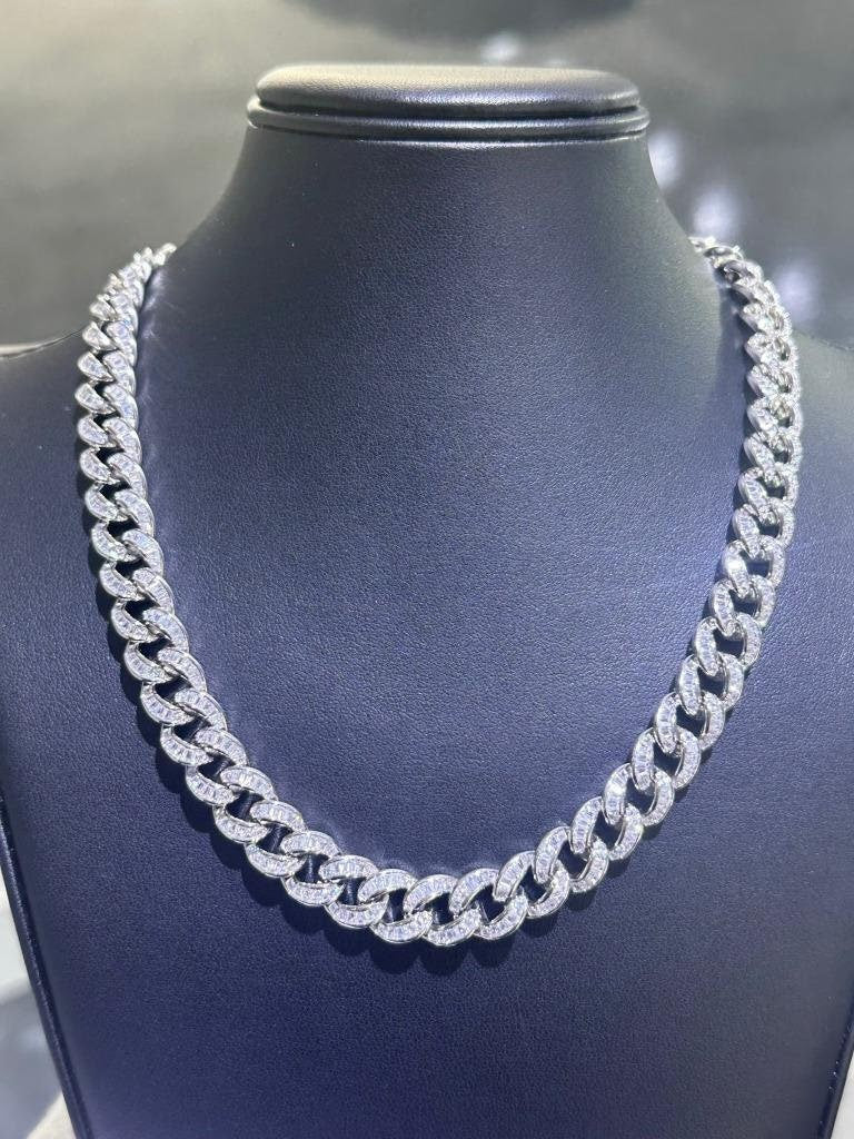 LIV Platinum Sterling Silver Miami Cuban Baguette White Sapphire Tennis Necklace 16"