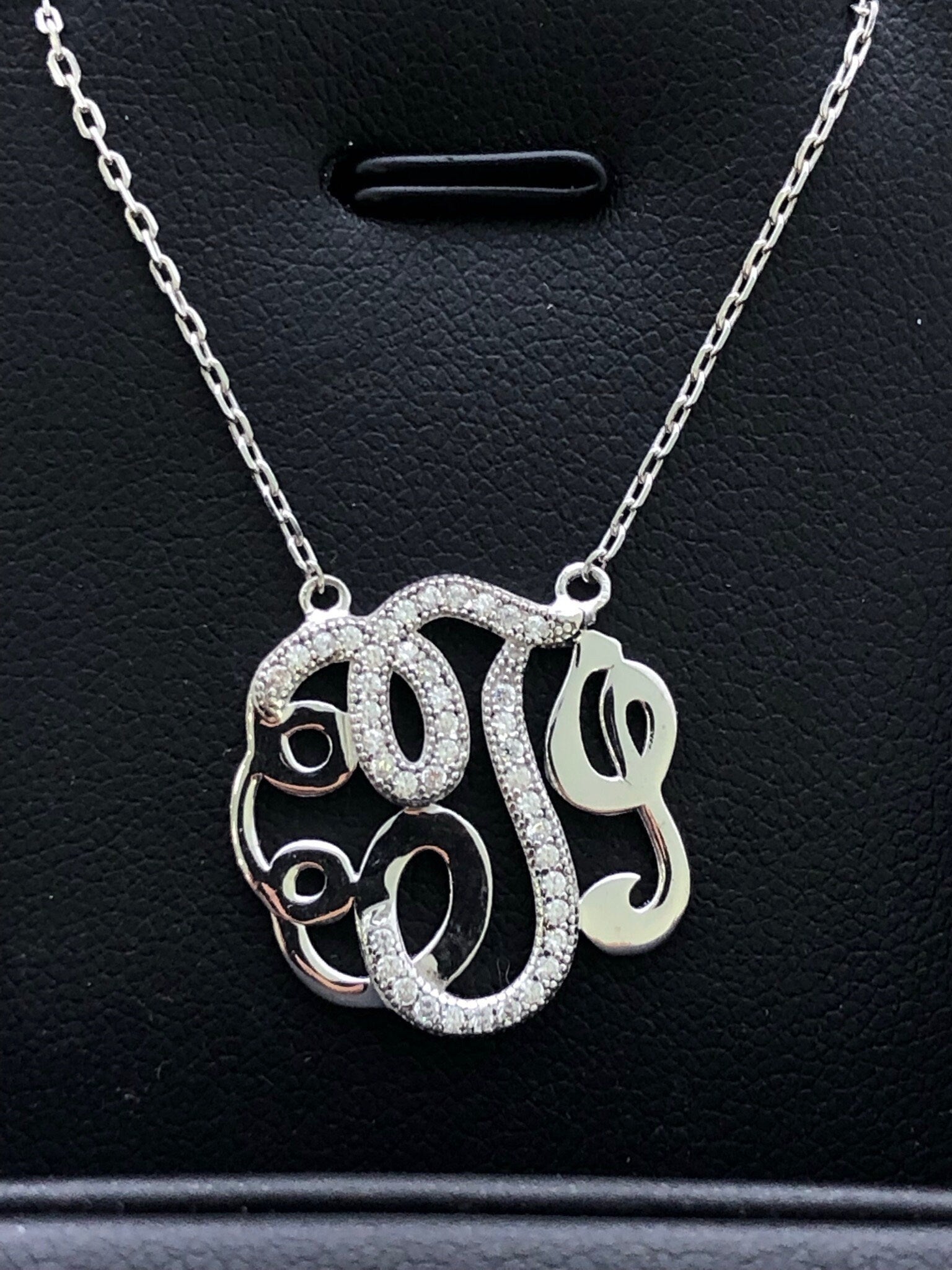 LIV Platinum Sterling Silver Pave White Sapphire Initial T Design Monogram Necklace