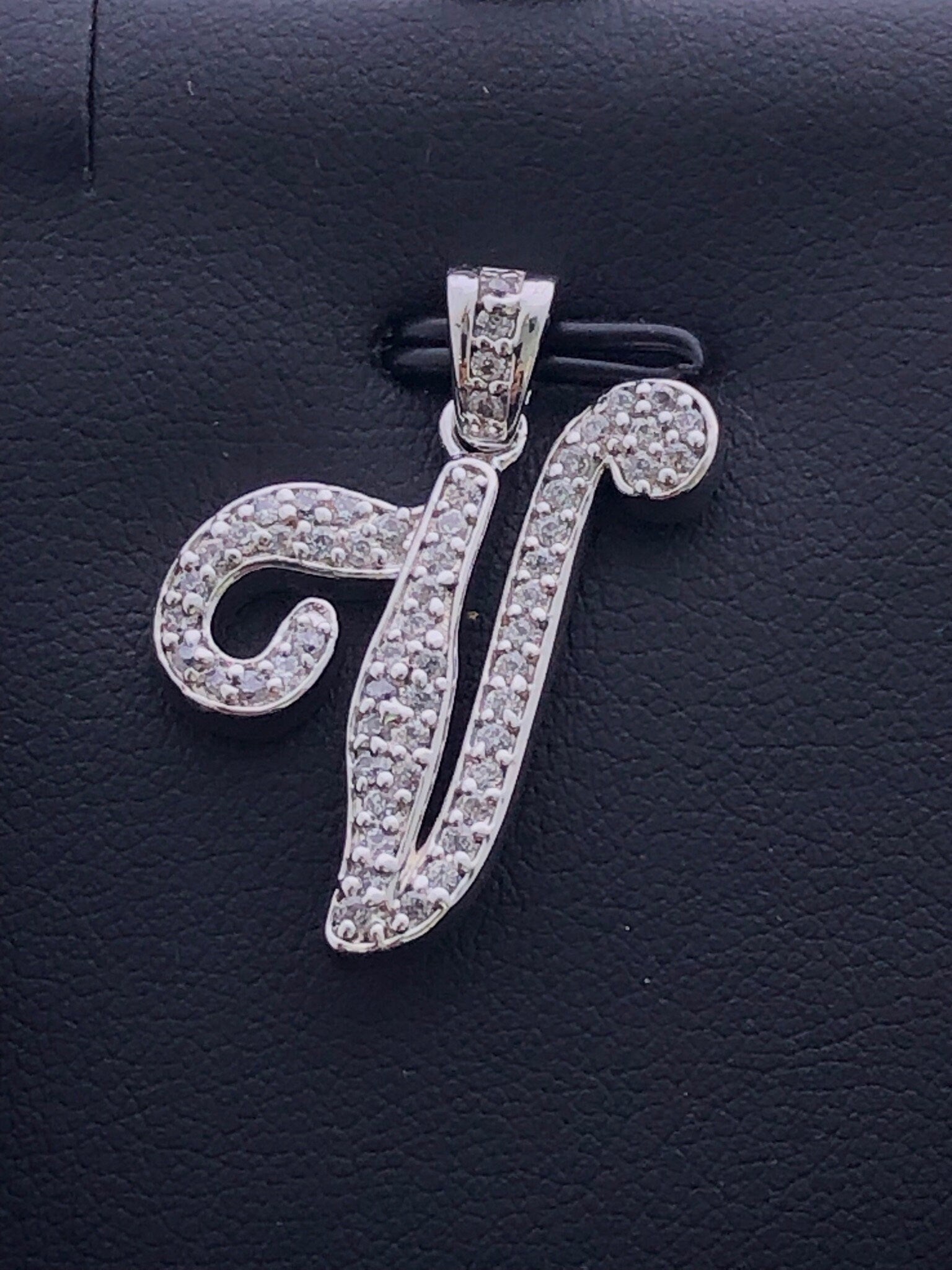 LIV Platinum Sterling Silver Pave White Sapphire Initial V Script Halo Necklace Gift