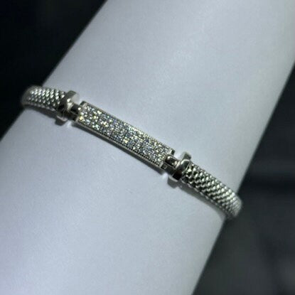LIV Platinum Sterling Silver Pave White Sapphire Sideway Bar Halo Design Hand Made Mesh Lobster Lock Bracelet Gift