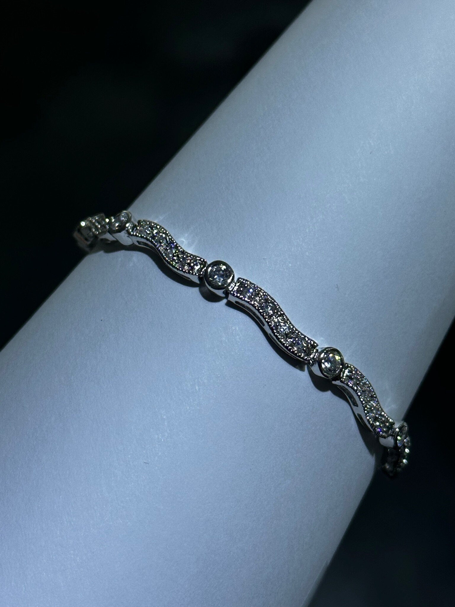 LIV Platinum Sterling Silver Simulated White Sapphire Halo Swirl Tennis Bracelet 7"L