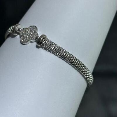 LIV Platinum Sterling Silver White Sapphire Clover Halo Mesh Tennis Bracelet 7" Gift