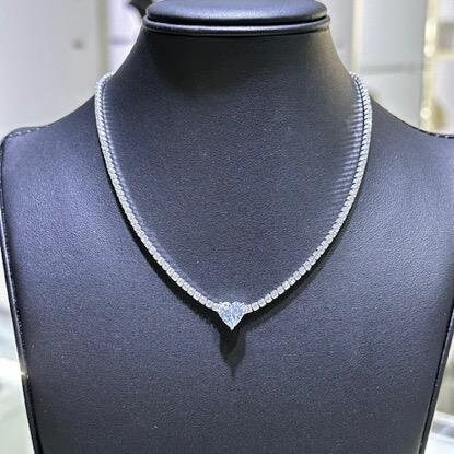 LIV Platinum Sterling Silver White Sapphire Heart Shape Choker Thin Tennis Necklace