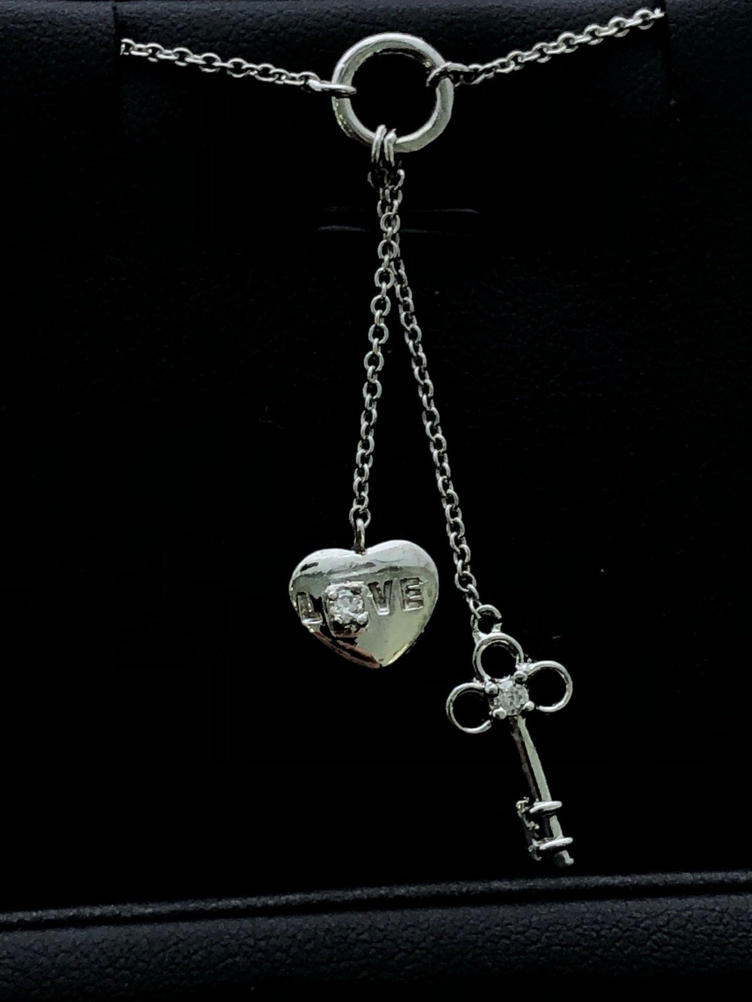 LIV Platinum Sterling Silver White Sapphire Lariat Design Heart Shape Necklace Gift