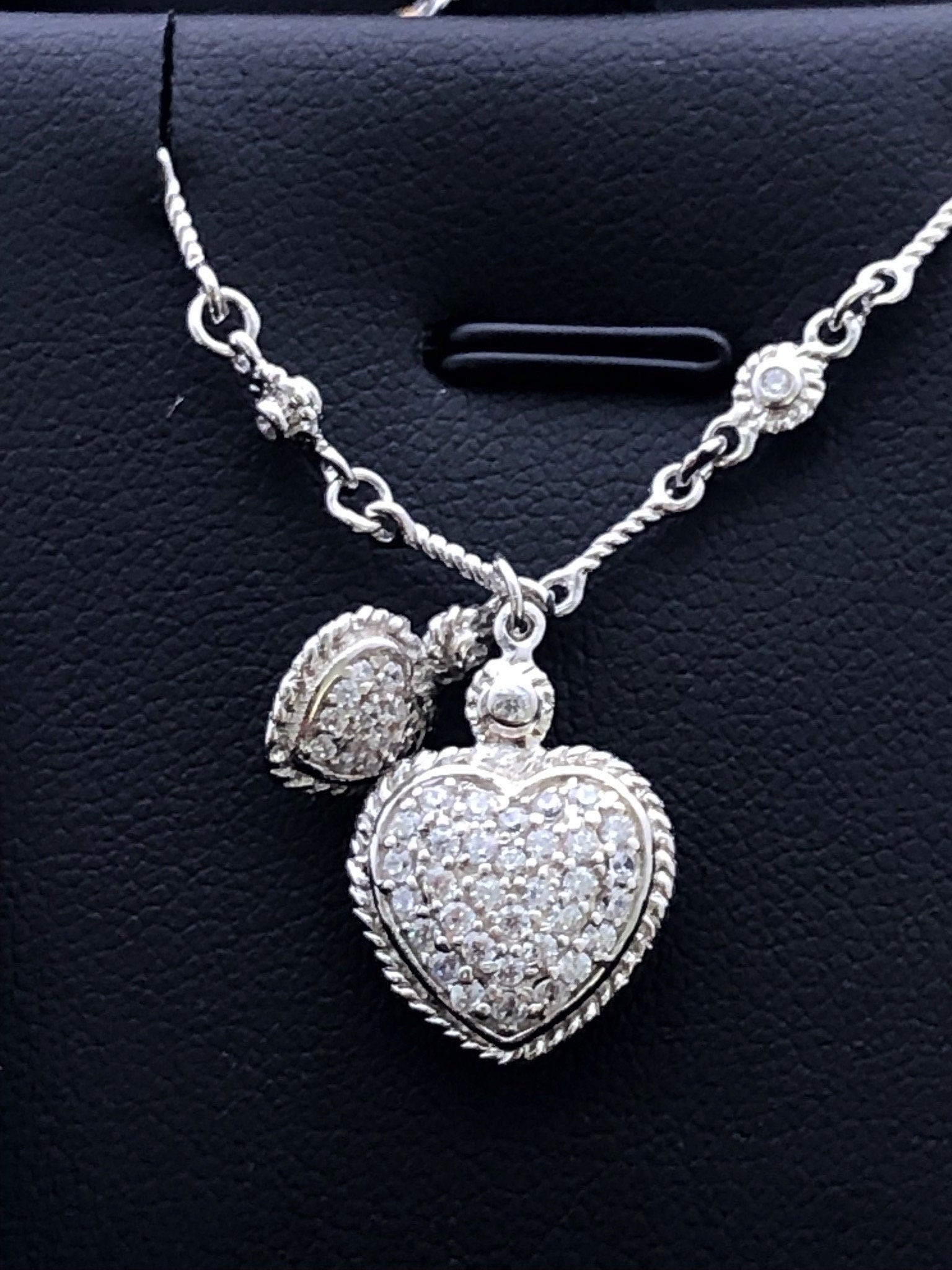 LIV Platinum Sterling Silver White Sapphire Pave Double Heart Halo Design Necklace