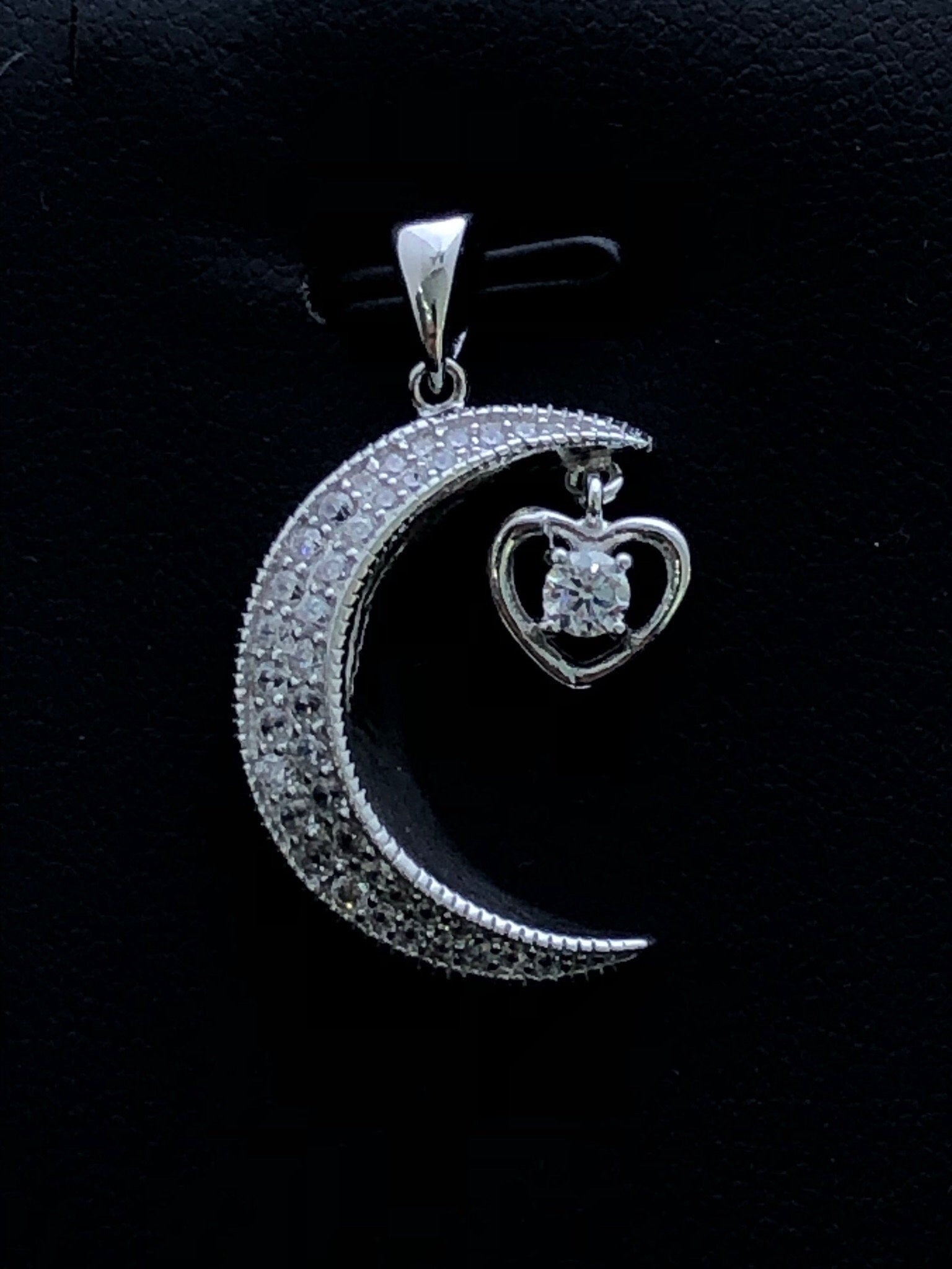 LIV Platinum Sterling Silver White Sapphire Pave Moon & Star Design Necklace Gift