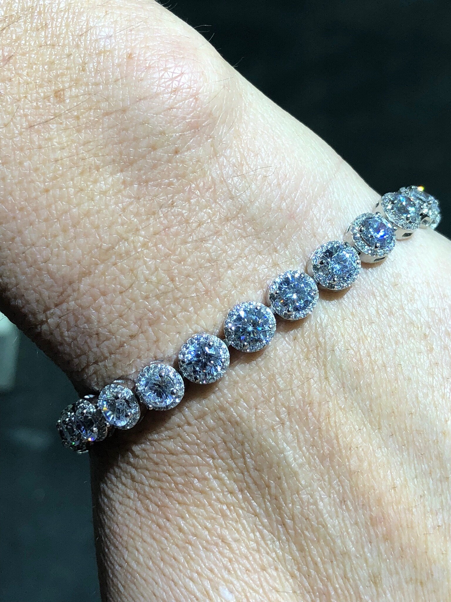 LIV Platinum Sterling Silver White Sapphire Round Cut Halo Pave Tennis Bracelet 7" Length Bridal Gift Bridal Gift