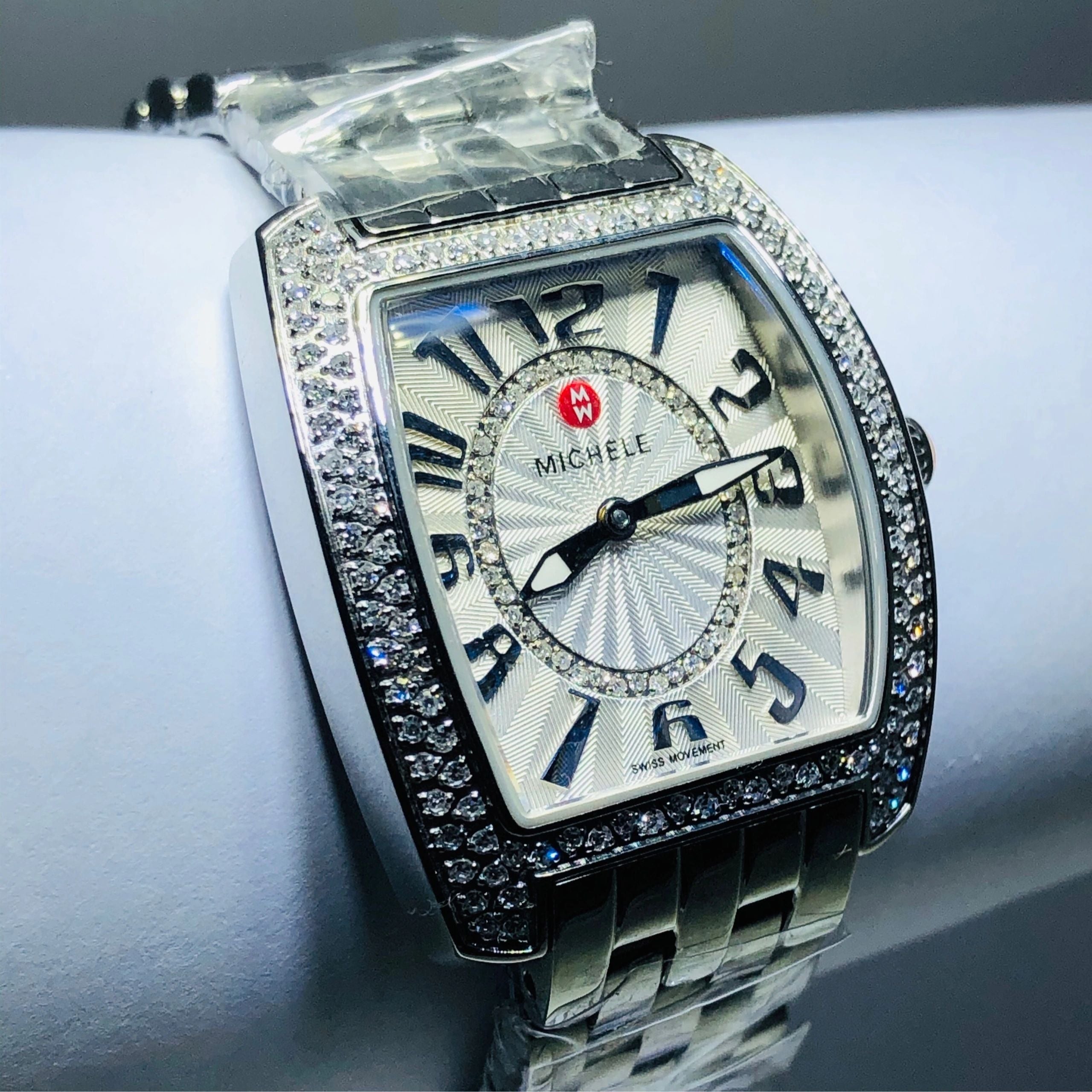 MW10 Michele deco special edition blue dial stainless steel diamond watch