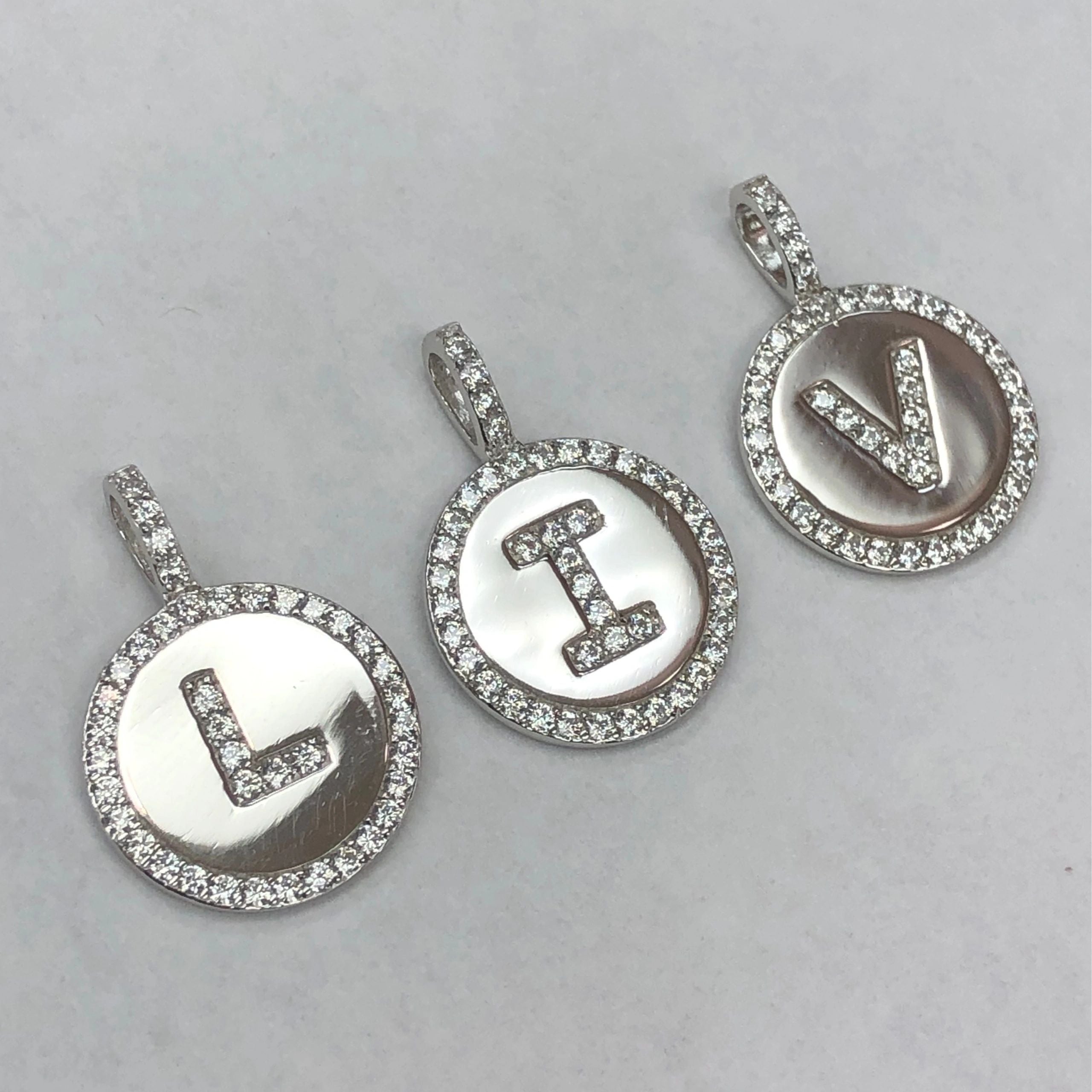 Platinum plated sterling silver .925 initial pendants with simulated diamonds w/ chain included
