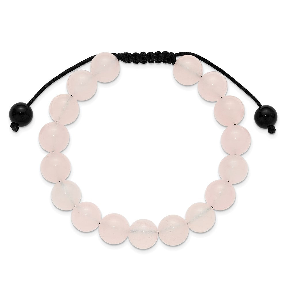 Rose Quartz and Onyx Beads on Black Polyester Cord Adjustable Bolo Bracelet