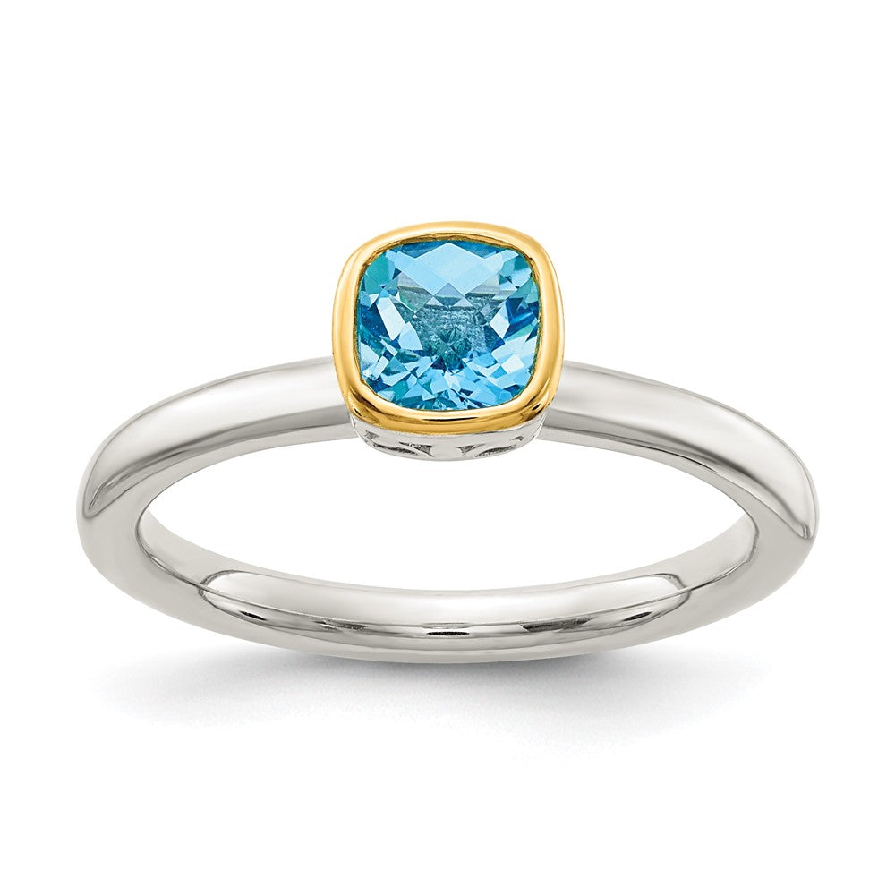Shey Couture Sterling Silver Rhodium-plated with 14k Accent Polished Cushion-cut Light Swiss Blue Topaz Ring - 3