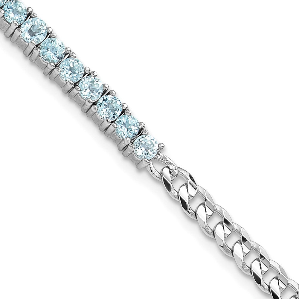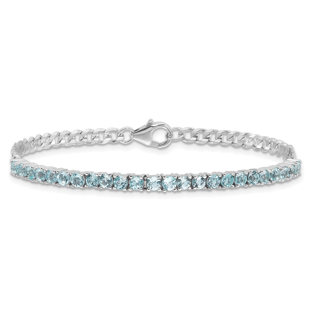 SS Rhodium-plated 3mm 3.21BT Blue Topaz Curb Chain Bracelet