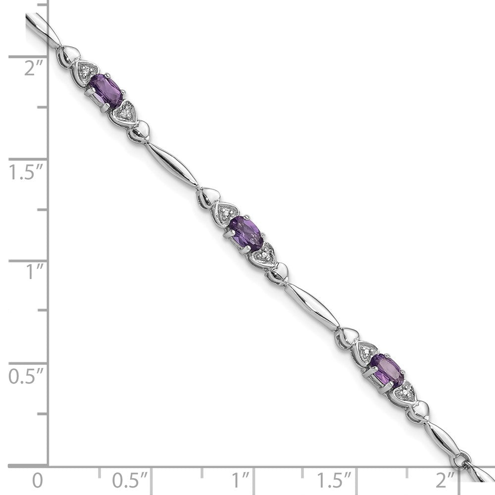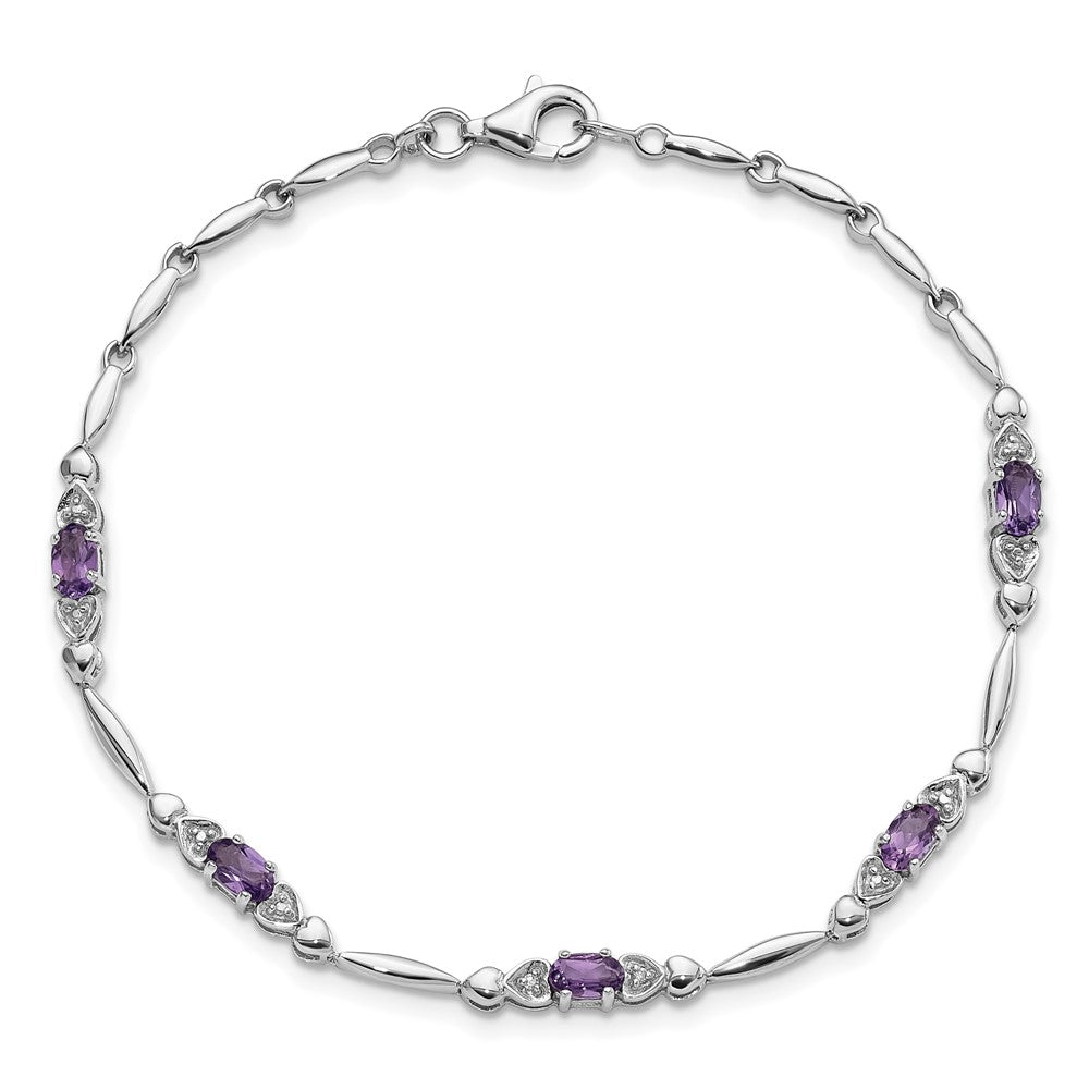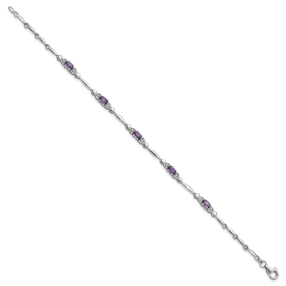 SS Rhodium-plated Amethyst and Diamond Heart 7.5in Bracelet