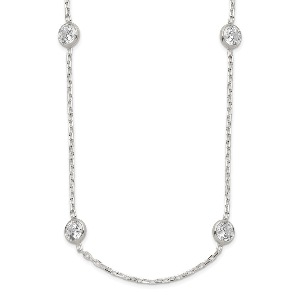 Sterling Silver 24 Inch w/2 in ext. Station CZ Necklace