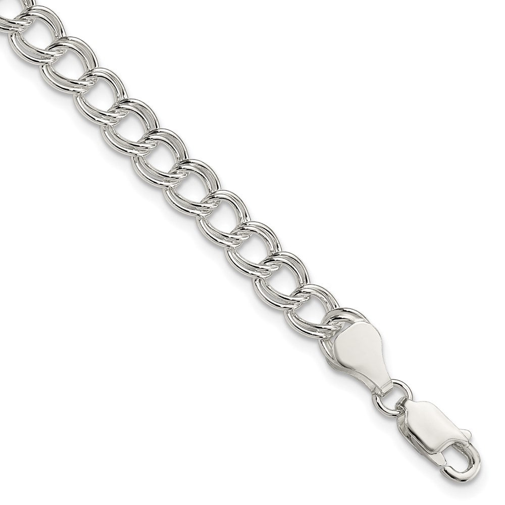 Sterling Silver 6mm Solid Double Link Charm Bracelet