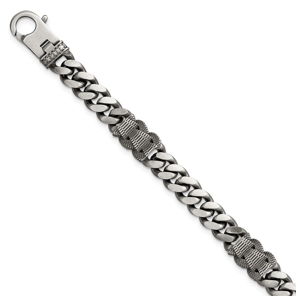 Sterling Silver Black Ruthenium-plated Brushed and Textured Fancy Flat Curb Chain Mens 8.5 inch Bracelet