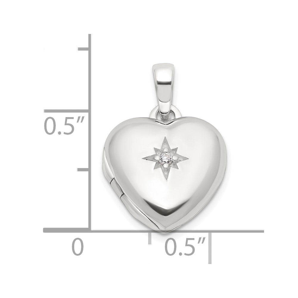 Sterling Silver E-coated CZ 13mm Heart Locket