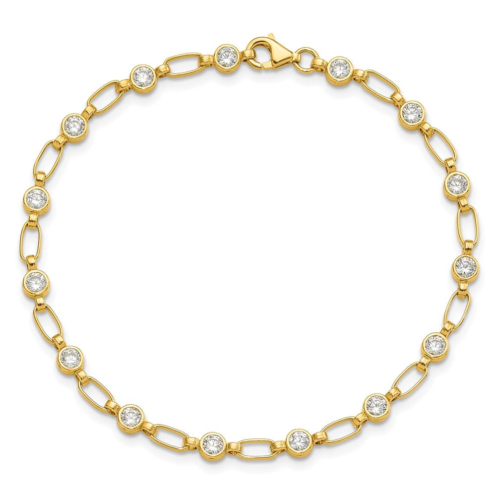 Sterling Silver Gold-tone Bezel CZ 7.5in Bracelet