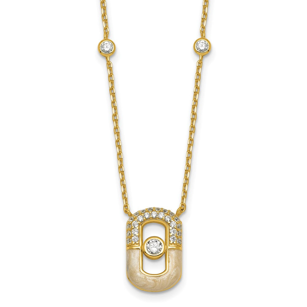 Sterling Silver Gold-tone CZ and Champagne Enamel Rectangle 16 inch with 1.5 inch Extension Necklace