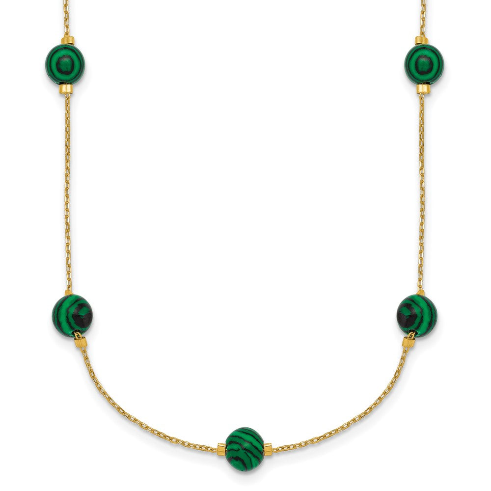 Sterling Silver Gold-Tone Polished Lab Created Malachite 16 Inch with 2 Inch Extension Necklace