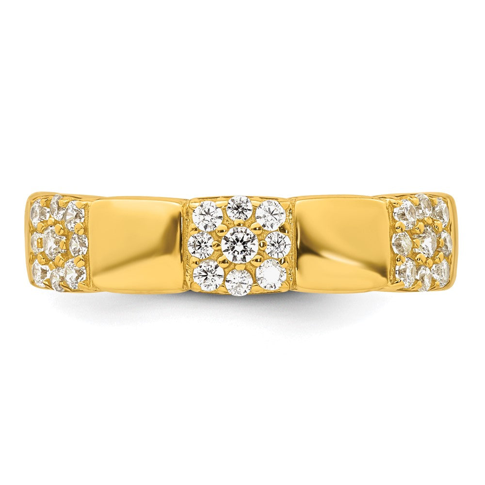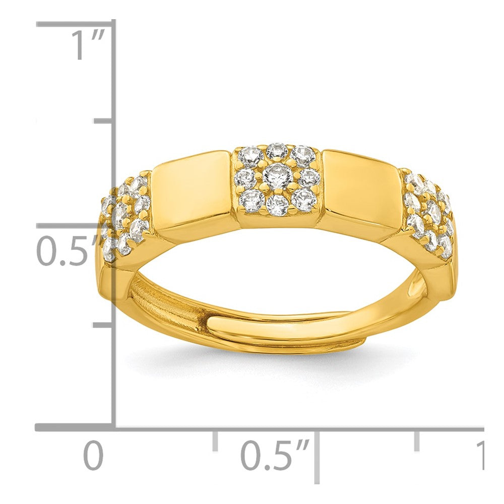Sterling Silver Gold-tone Polished Pave CZ Squares Size 6 Adjustable Ring