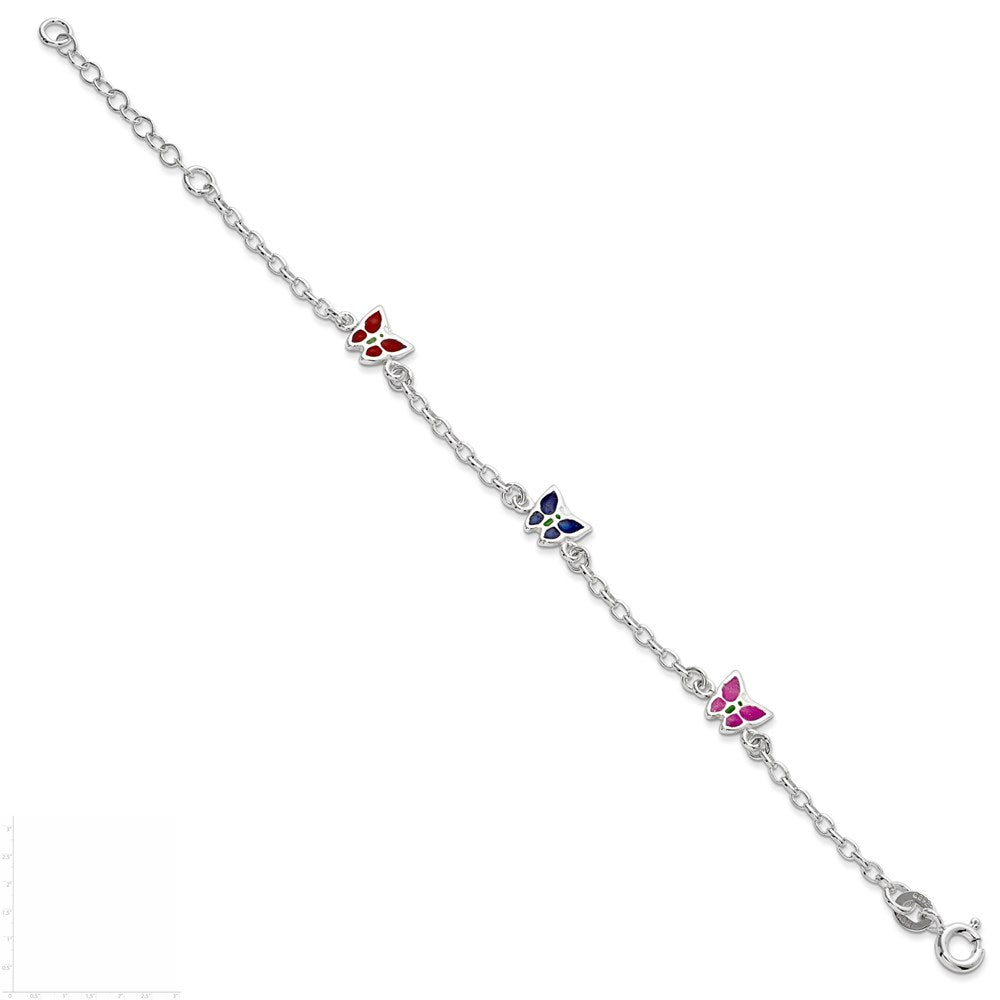 Sterling Silver Multi-color Enamel Butterfly w/ 1in ext. Children's Bracele