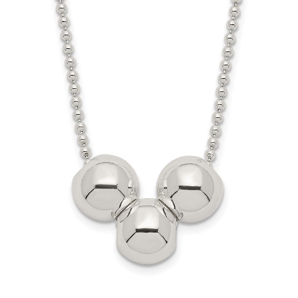 Sterling Silver Polished 3 Bead Necklace - 2