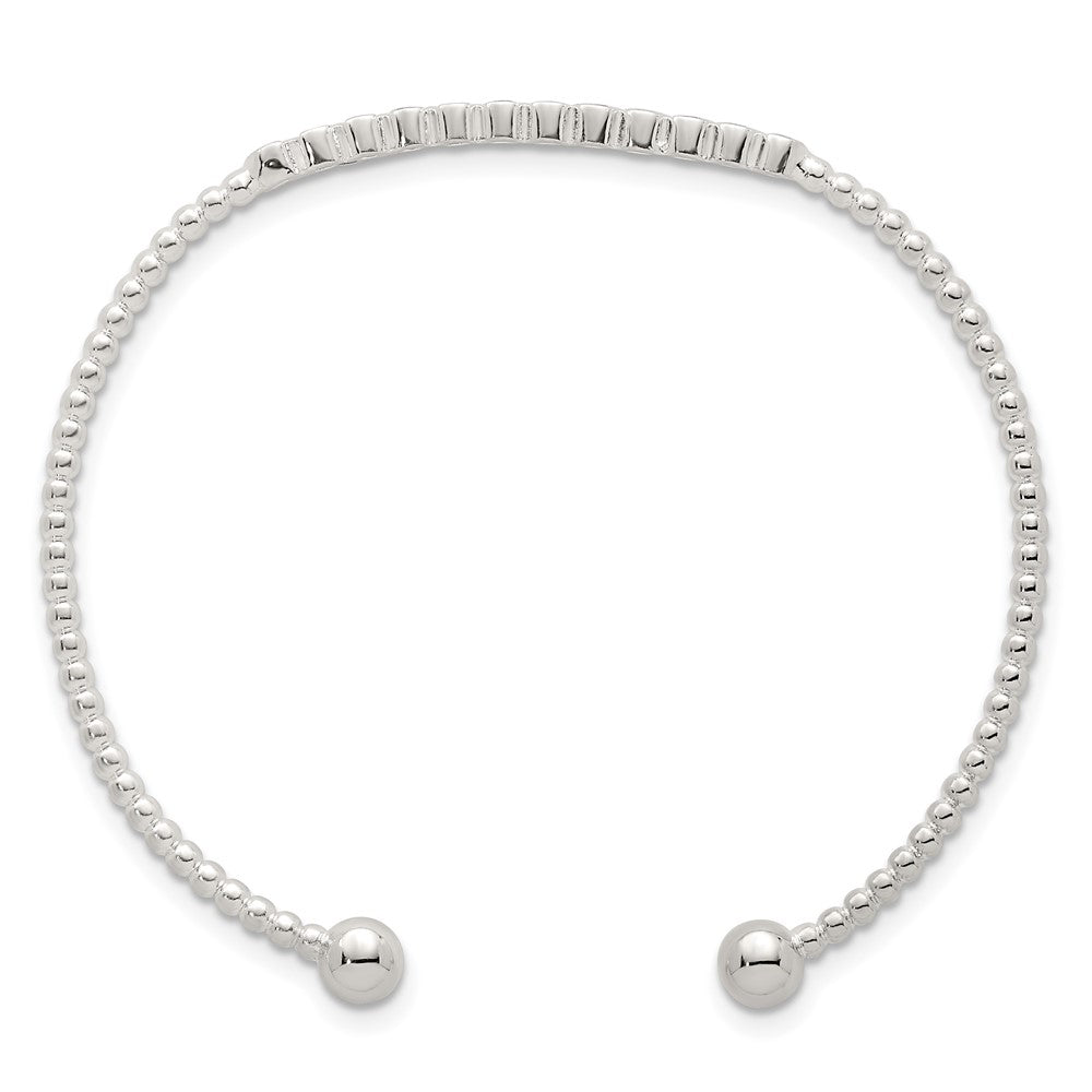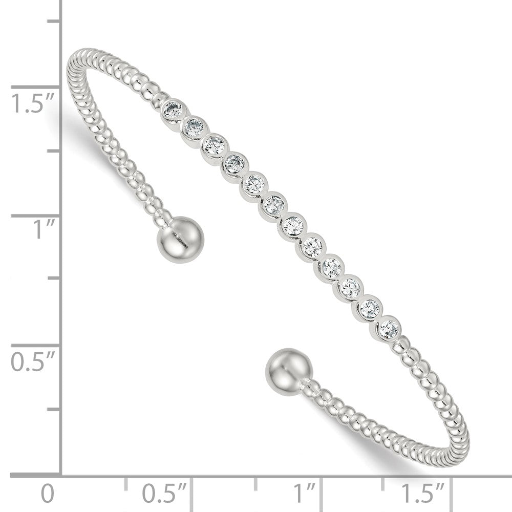Sterling Silver Polished and Beaded Bezel Set CZ Bar Cuff Bangle