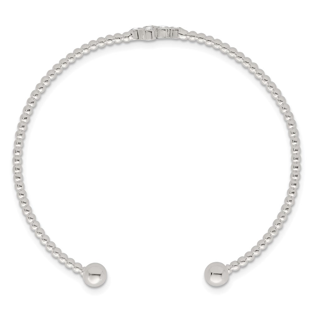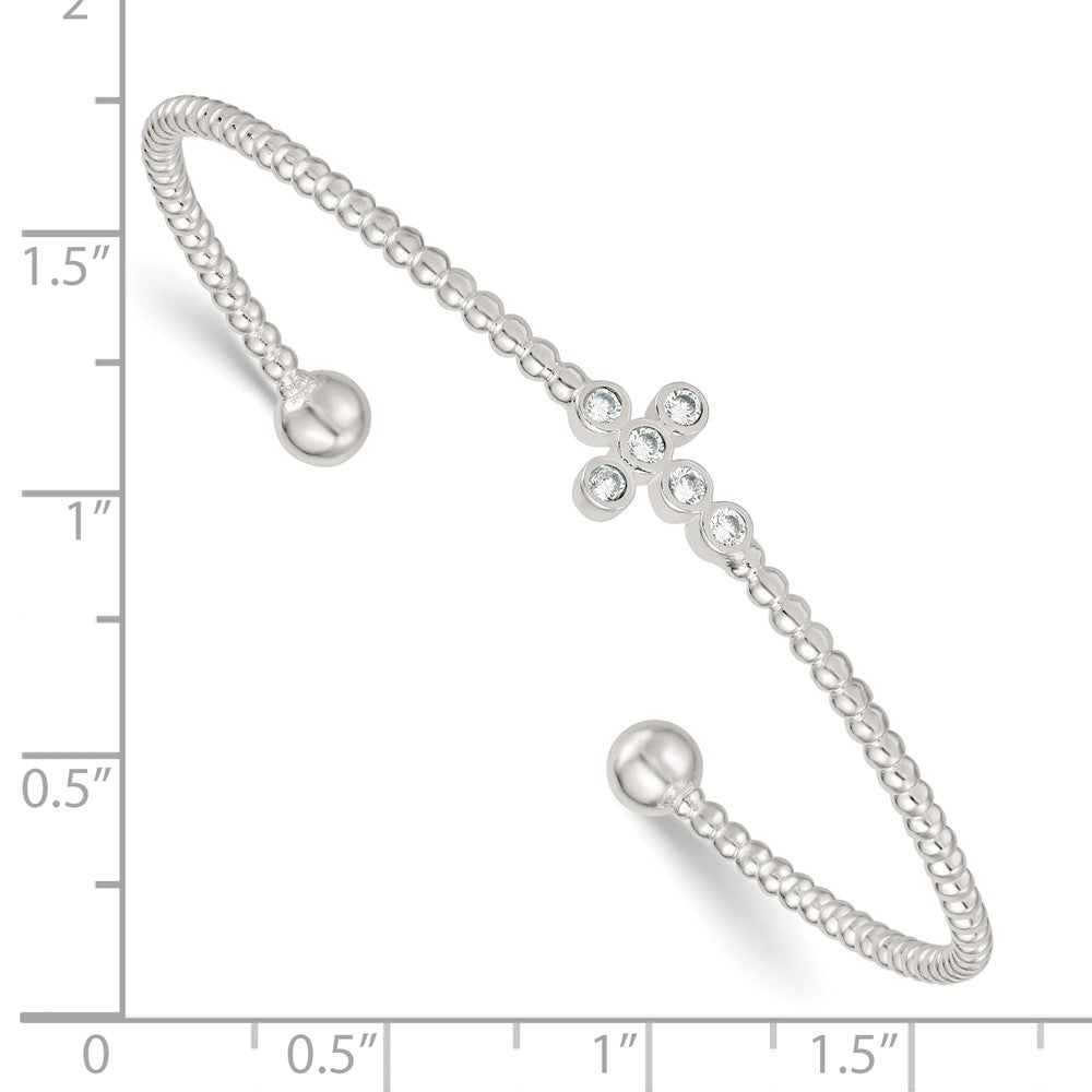 Sterling Silver Polished and Beaded CZ Cross Cuff Bangle