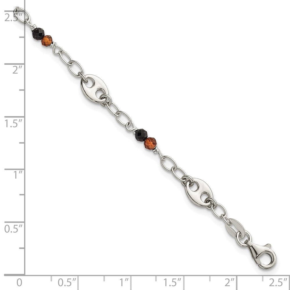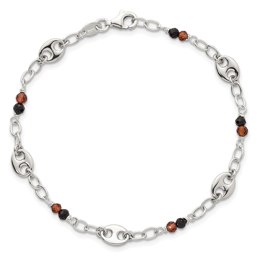 Sterling Silver Polished and Beaded Garnet and Spinel Fancy Link 7.5 inch Bracelet