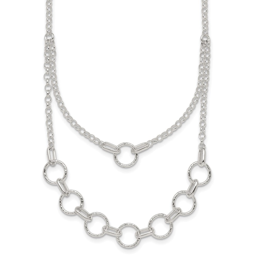 Sterling Silver Polished and Textured Circles Multi-strand 16 inch with 2 inch Extension Necklace
