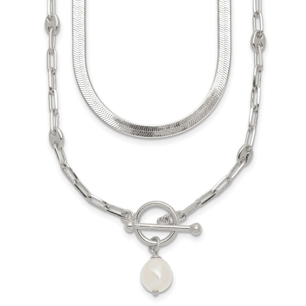 Sterling Silver Polished Baroque White Crystal Pearl Multi-strand 14 inch with 2 inch Extension Necklace
