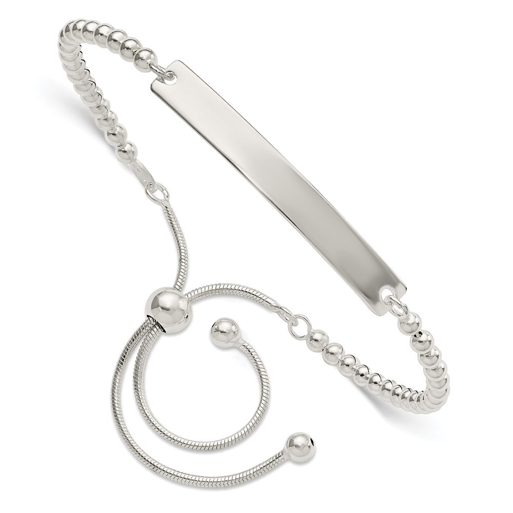Sterling Silver Polished Beaded Adjustable ID Bracelet