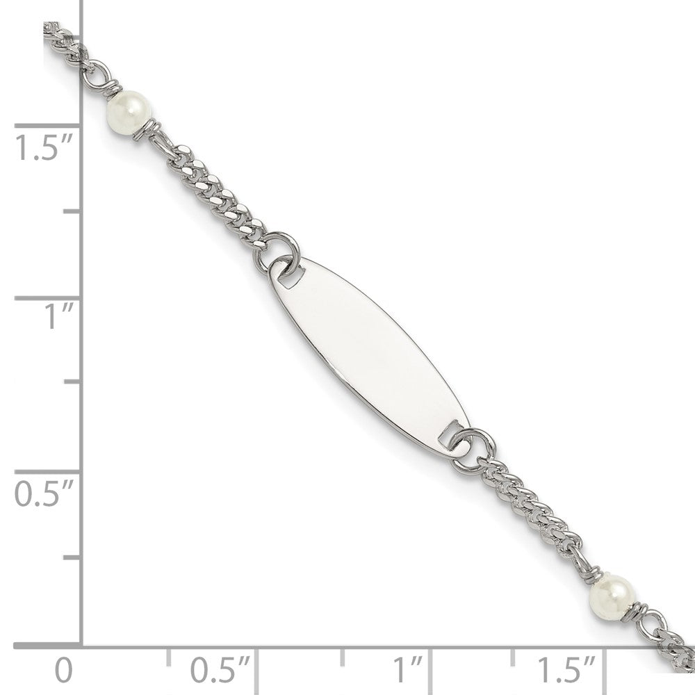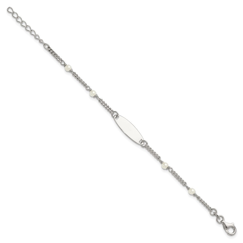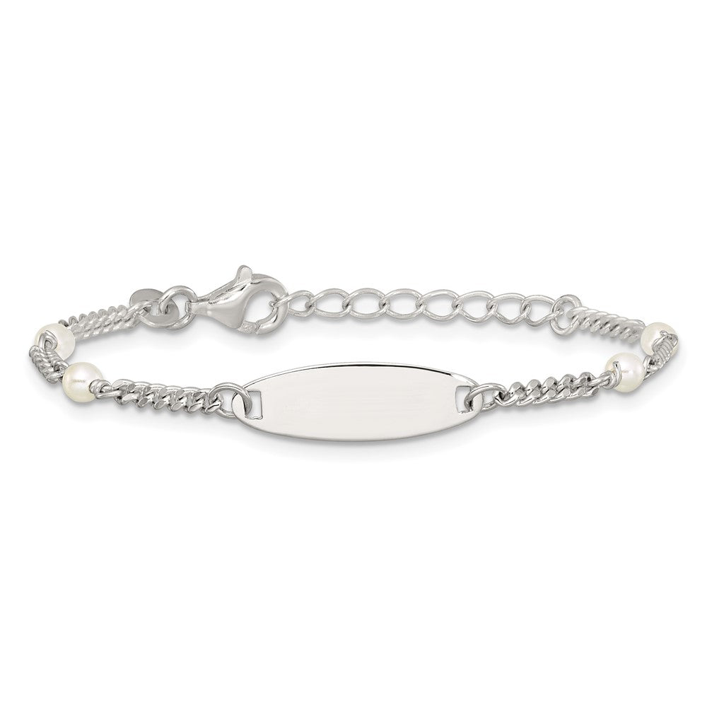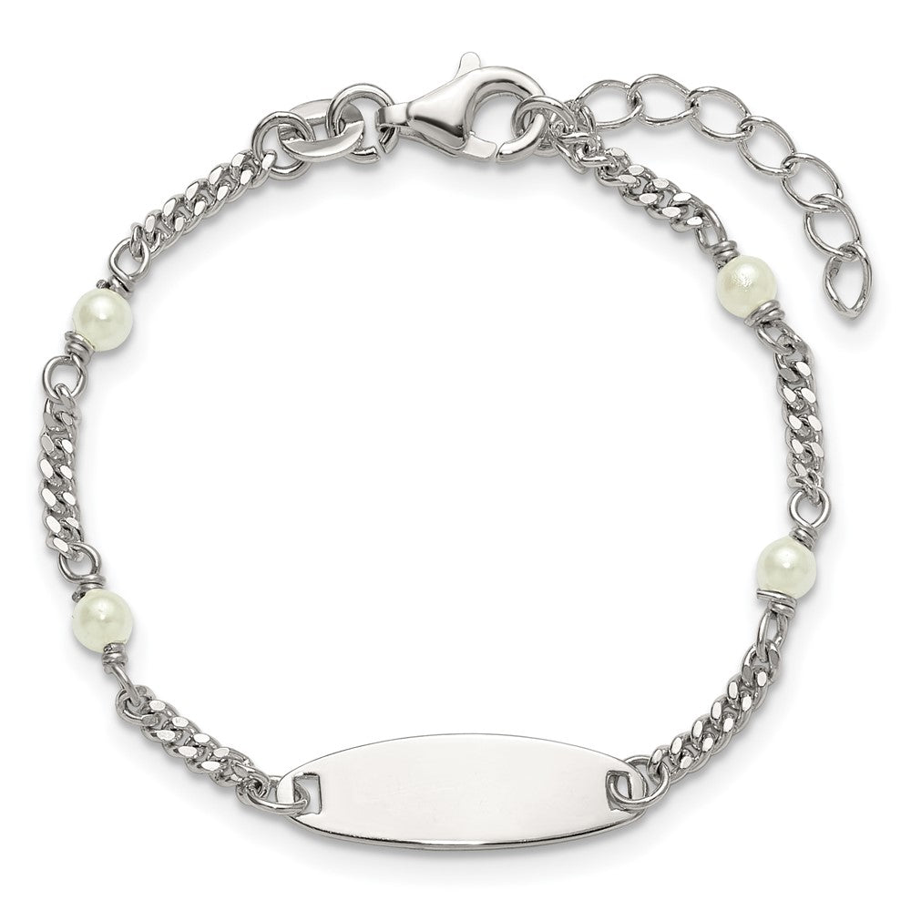 Sterling Silver Polished Curb Link and Acrylic Pearl 5 inch with 1 inch Extension Childrens ID Bracelet