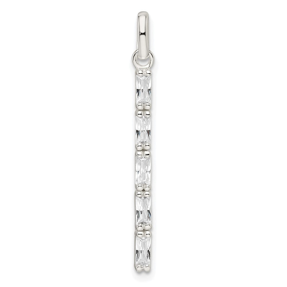 Sterling Silver Polished CZ Bar Pendant