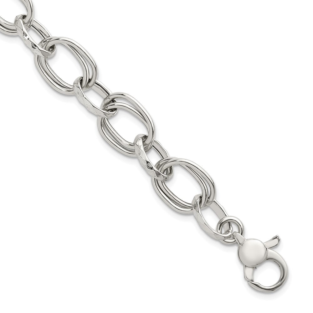 Sterling Silver Polished Double Link and Faceted Link 8 inch with 1 inch Extender Bracelet