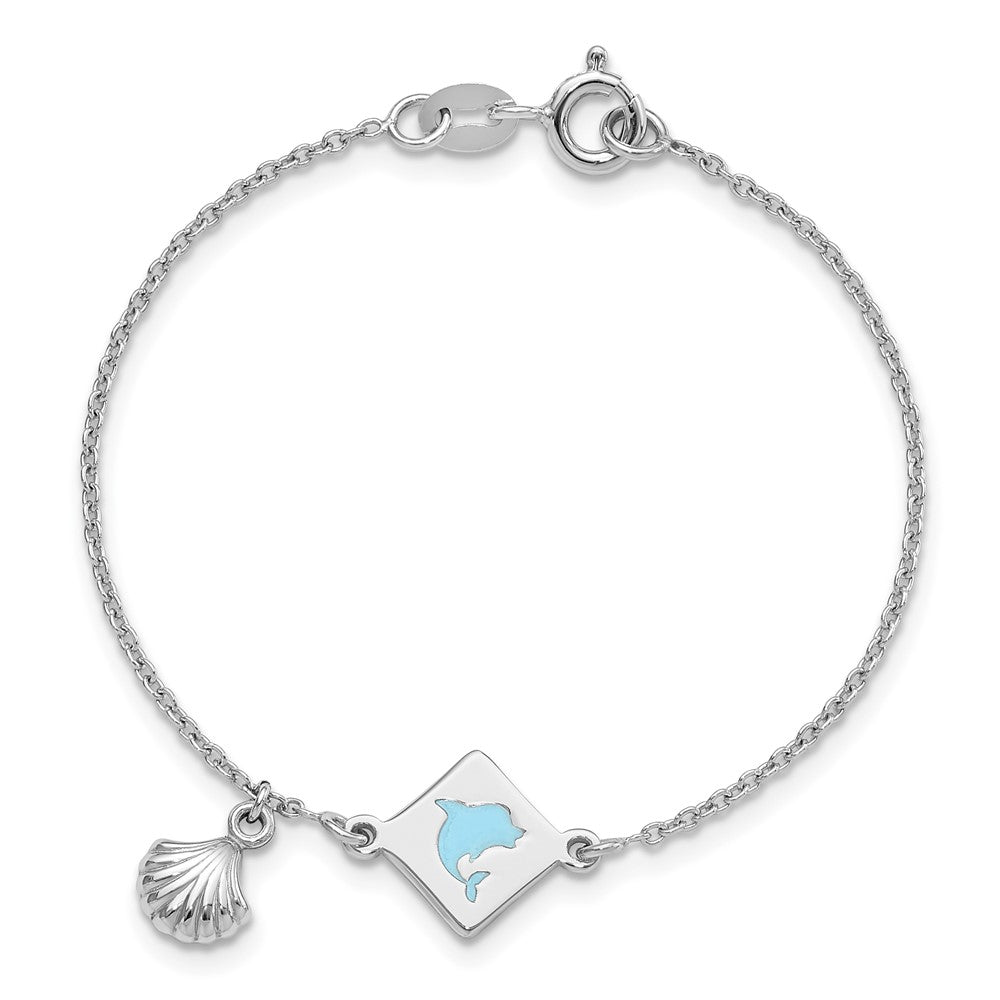 Sterling Silver Polished Enameled Dolphin Seashell Children's 6in Bracelet