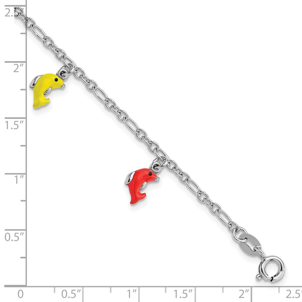 Sterling Silver Polished & Enameled Dolphins Children's 6in Bracelet