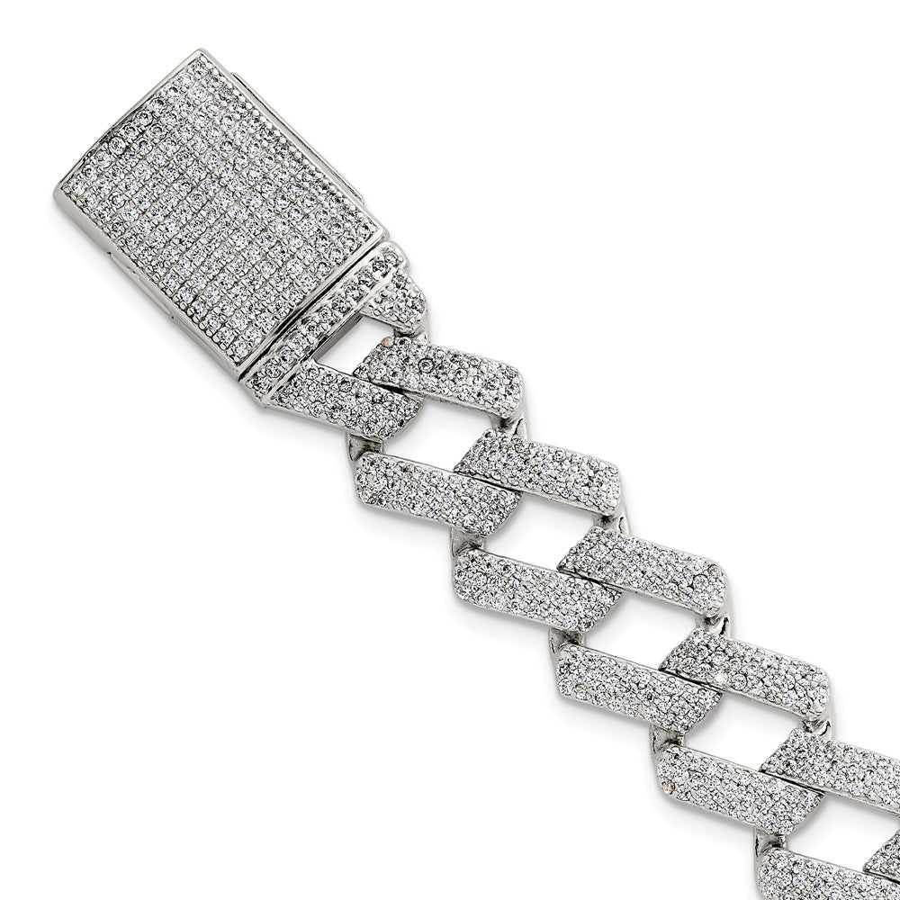 Sterling Silver Polished Fancy CZ Curb Link 8.5 Inch Mens Bracelet