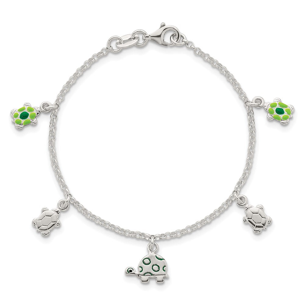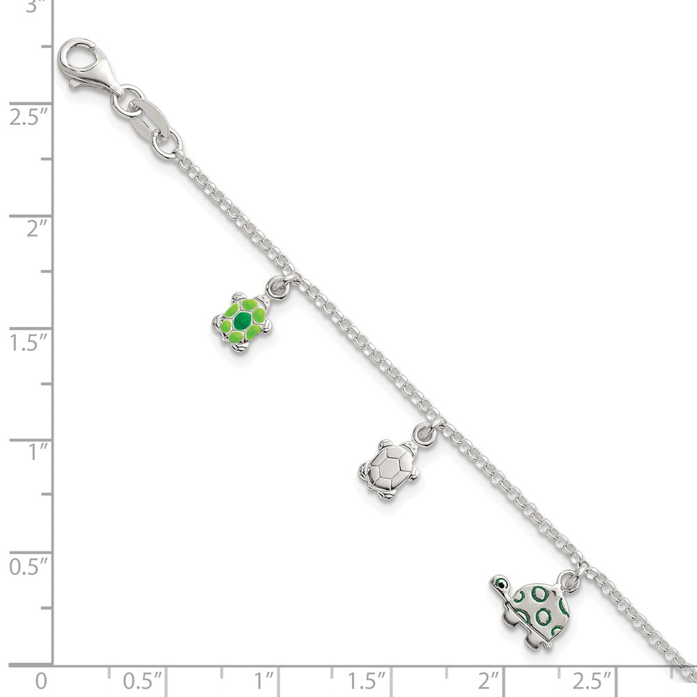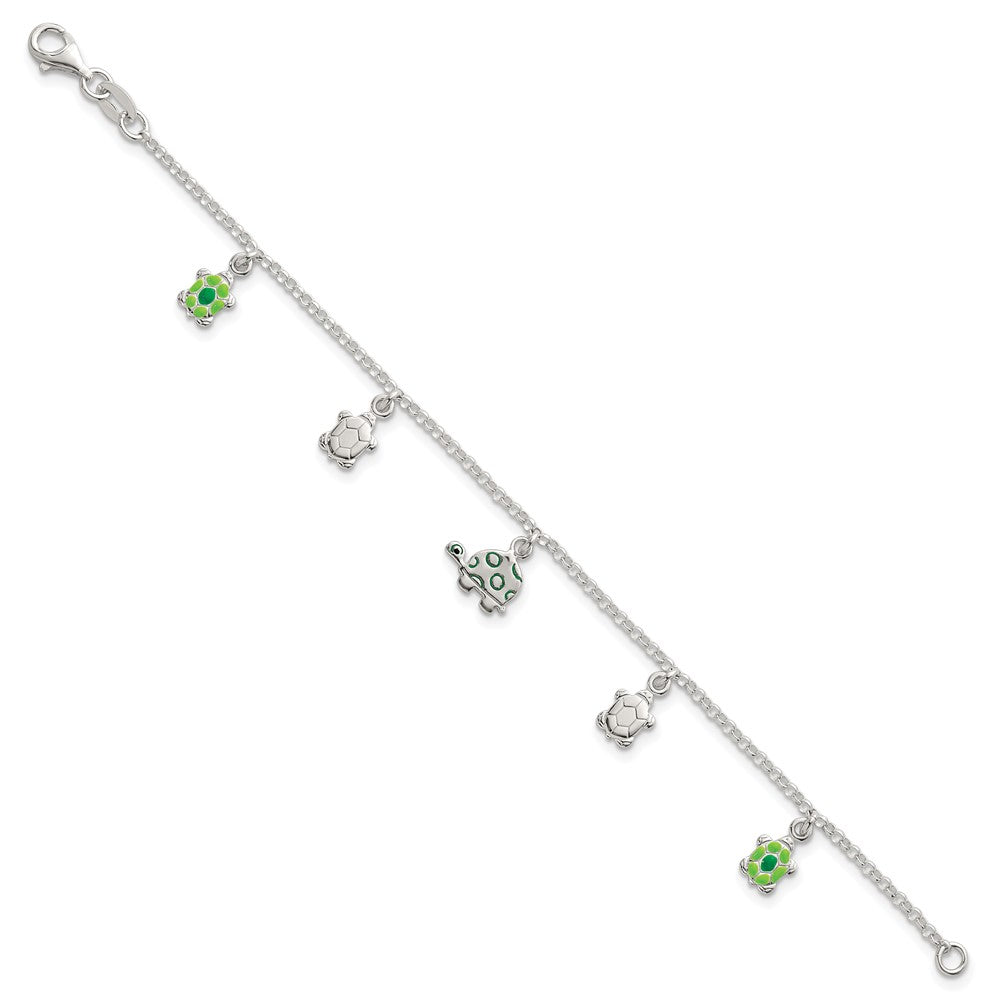 Sterling Silver Polished Green Enamel Turtles Childrens 6 inch Bracelet