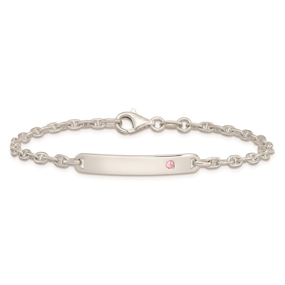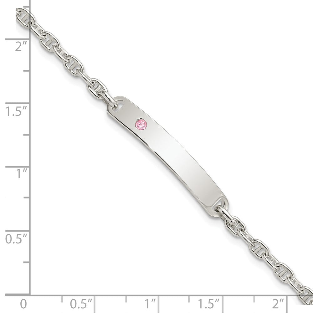 Sterling Silver Polished ID with Pink CZ Bracelet