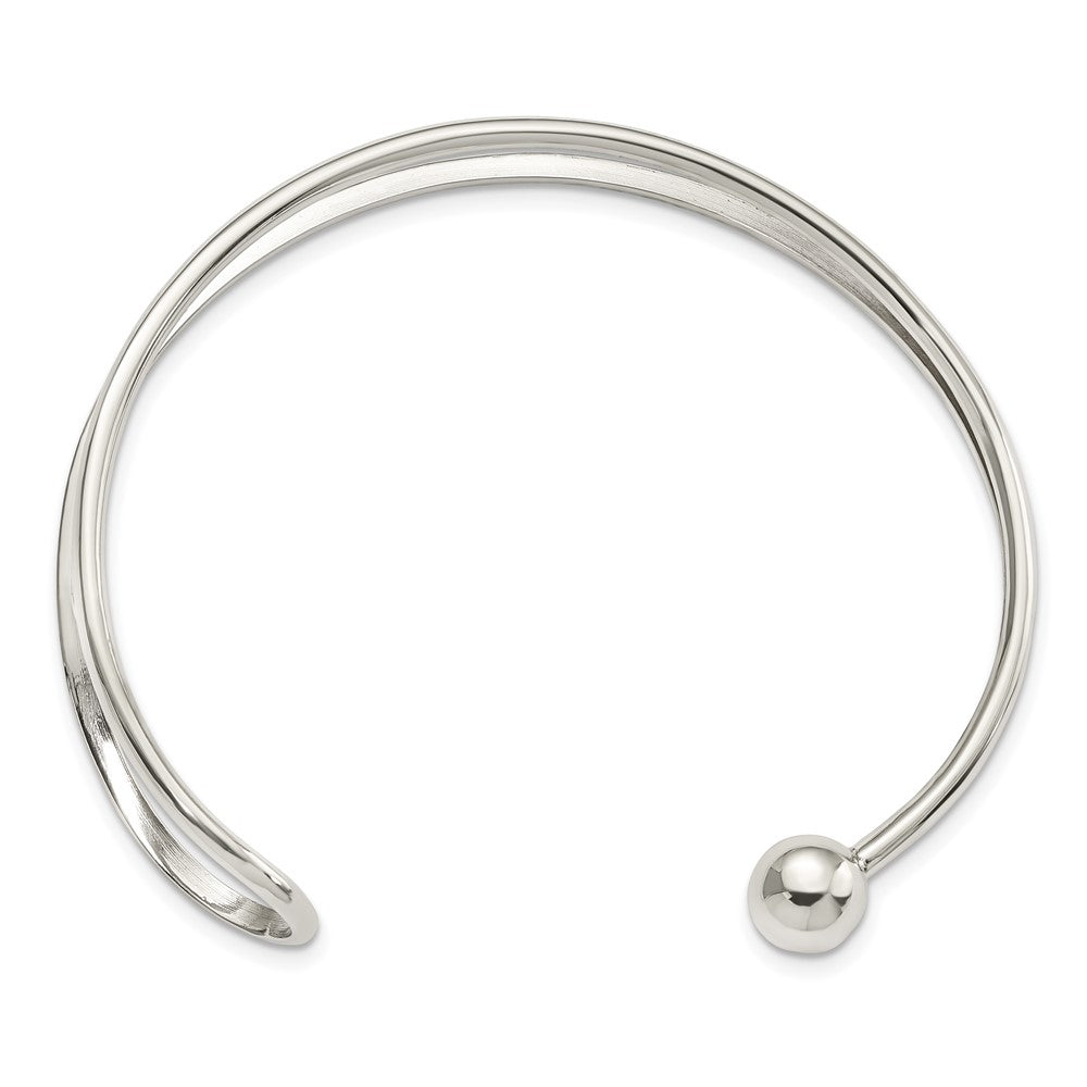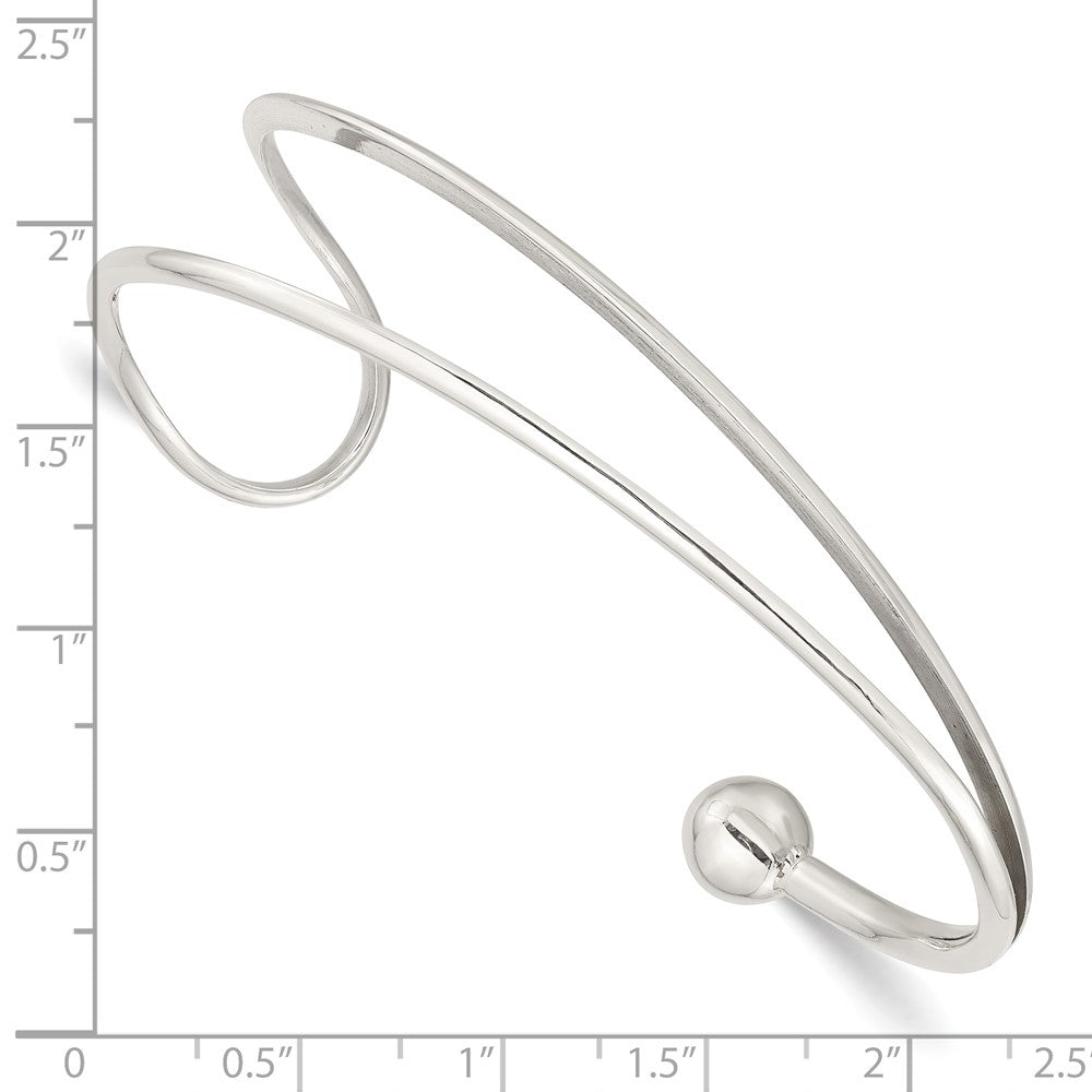 Sterling Silver Polished Loop & Ball Cuff Bangle