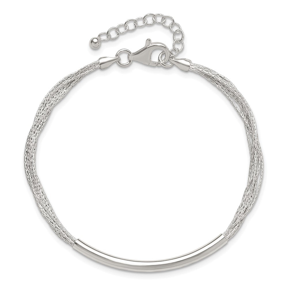 Sterling Silver Polished Multi-Strand 7in w/1in ext. Tube Bracelet