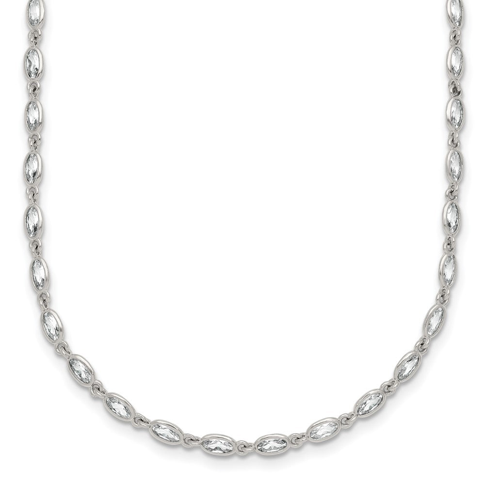 Sterling Silver Polished Oval Bezel CZ 16 Inch with 2 Inch Extension Necklace