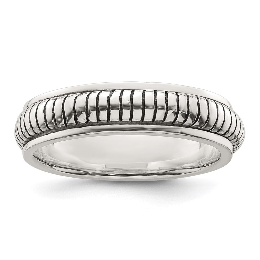 Sterling Silver Polished Oxidized Half Round Patterned Men's Ring - 3