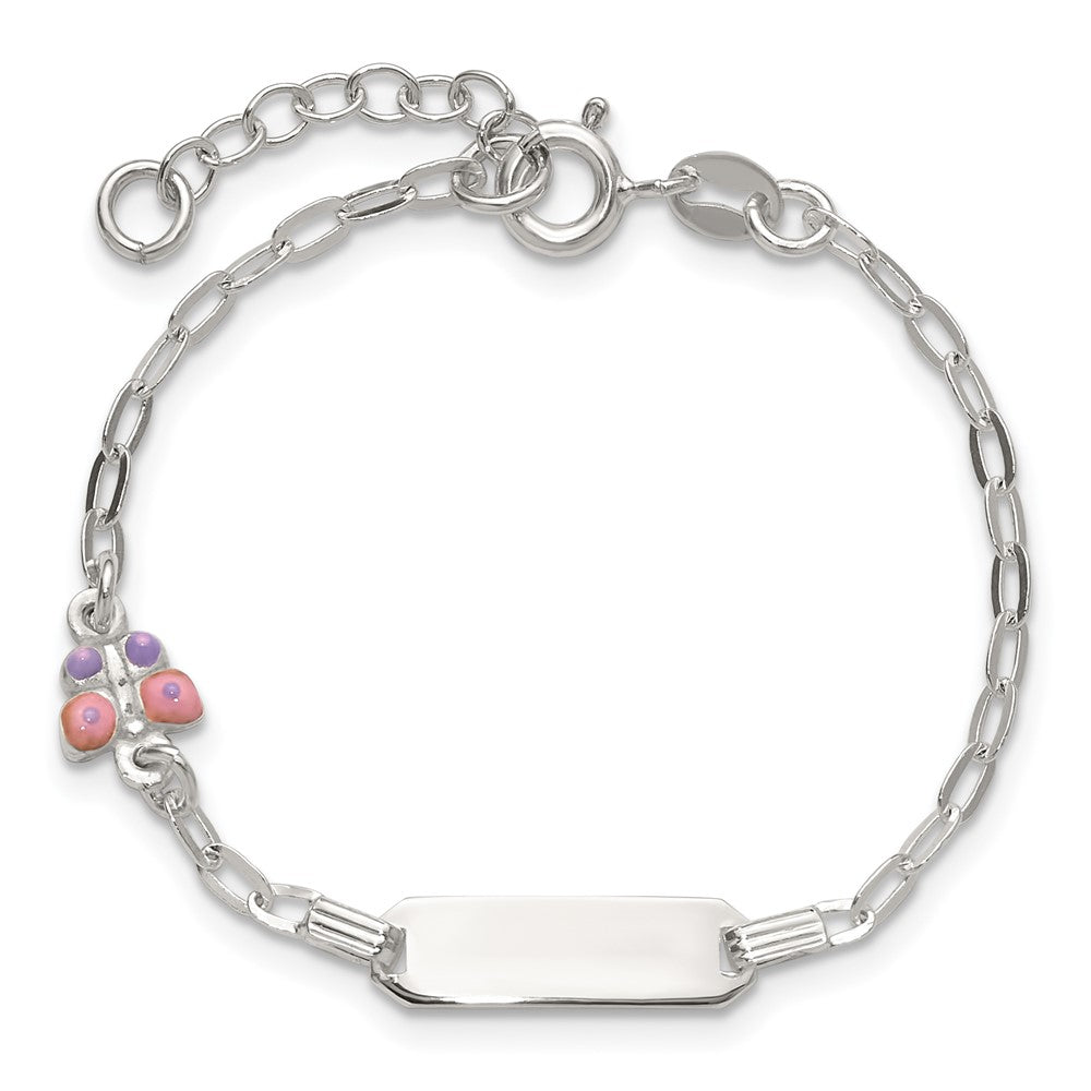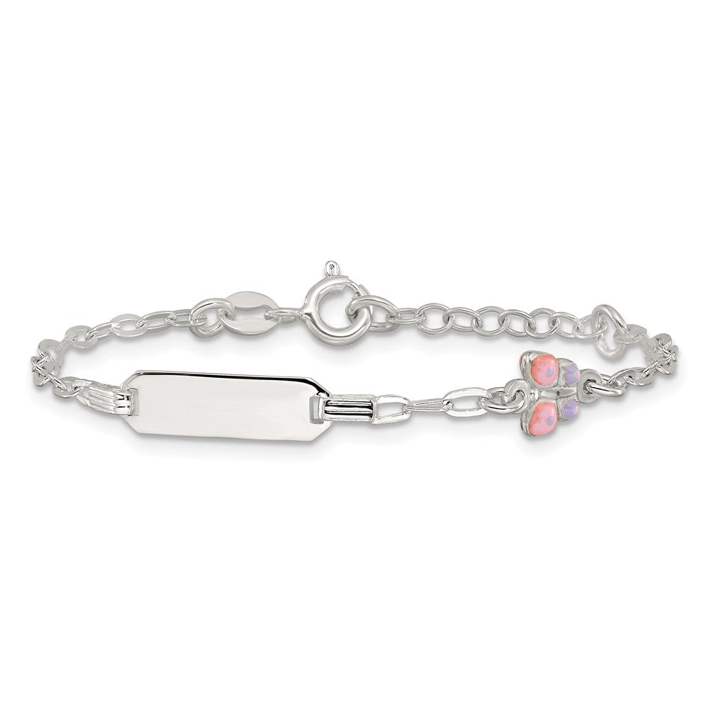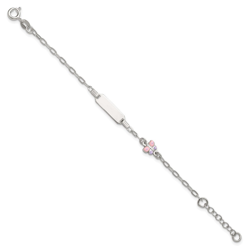 Sterling Silver Polished Pink and Purple Enameled Butterfly 5 inch with 1 inch extension Childrens ID Bracelet