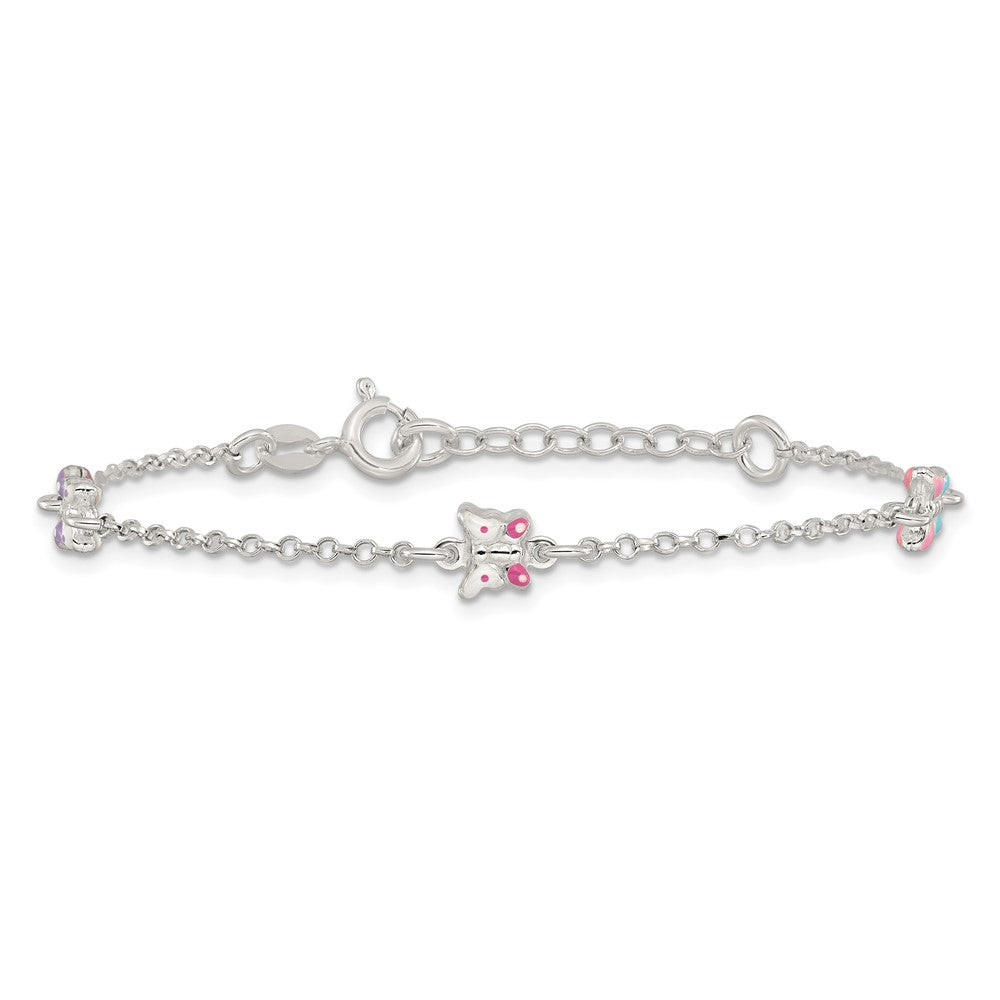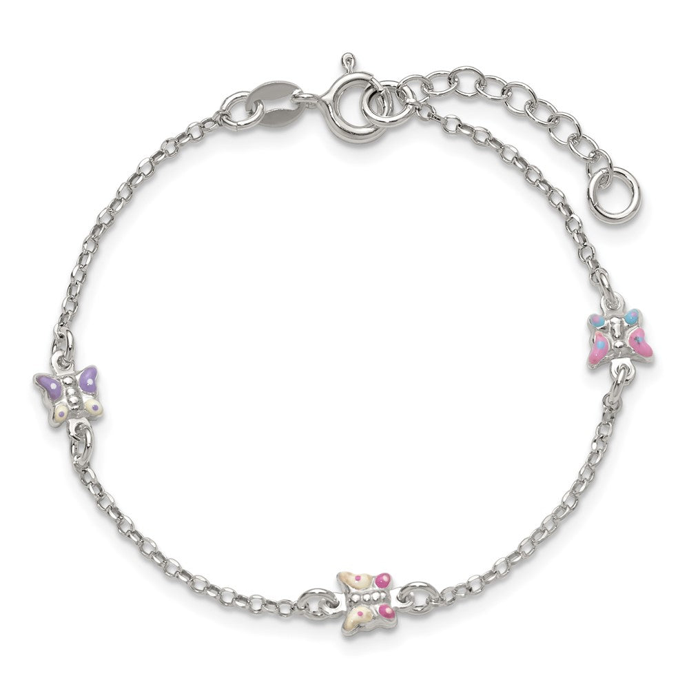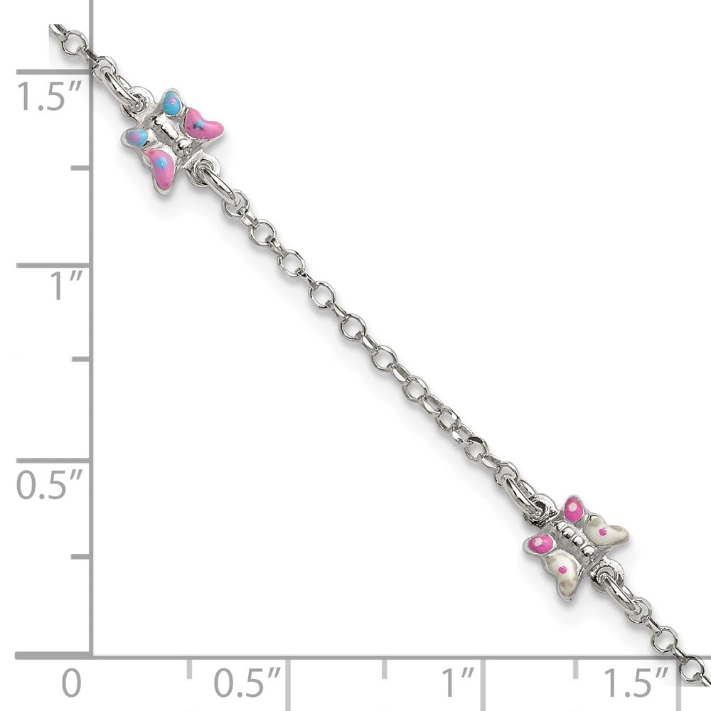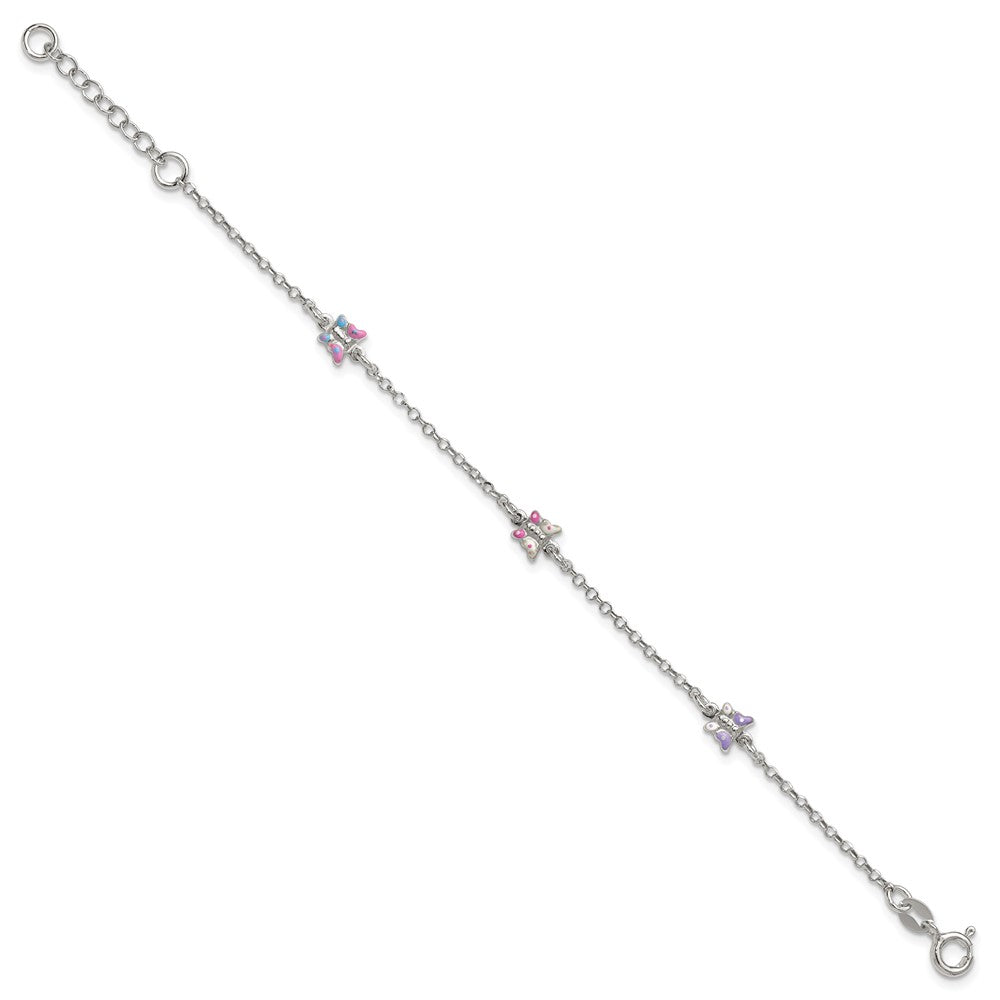 Sterling Silver Polished Pink/Purple/White/Blue Enameled Butterfly 6 inch with 1 inch extension Childrens Bracelet