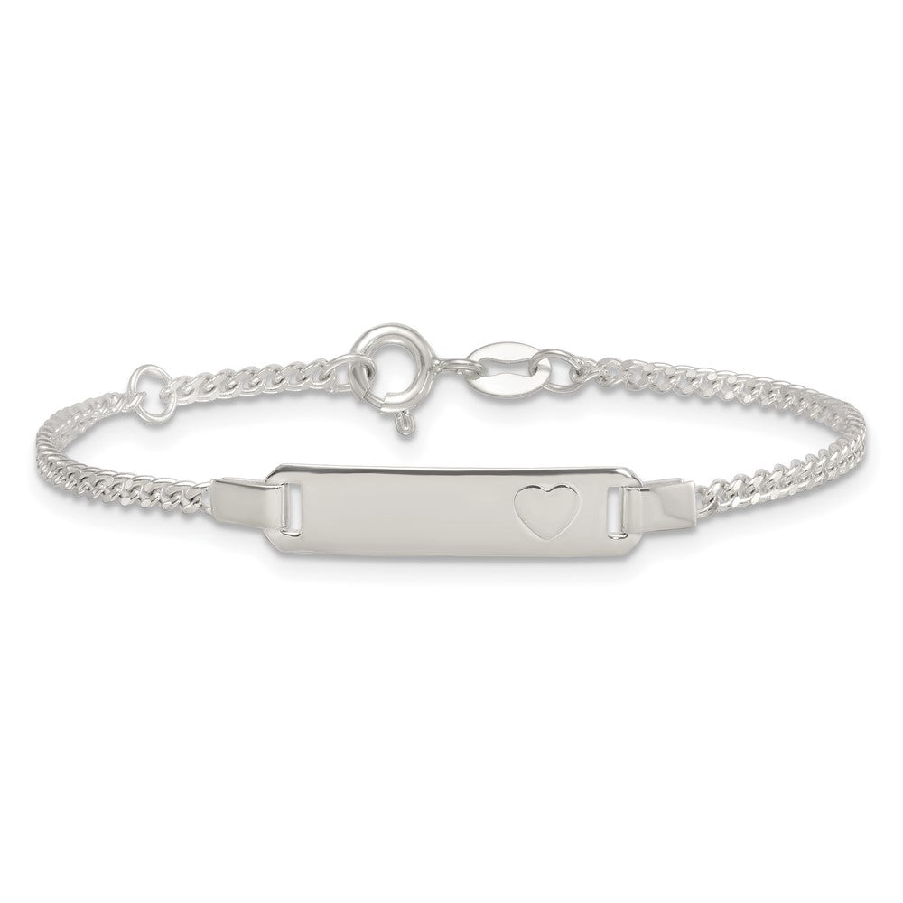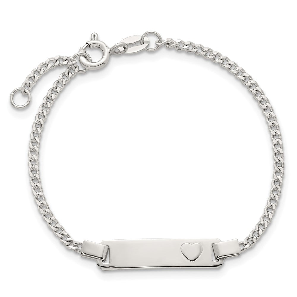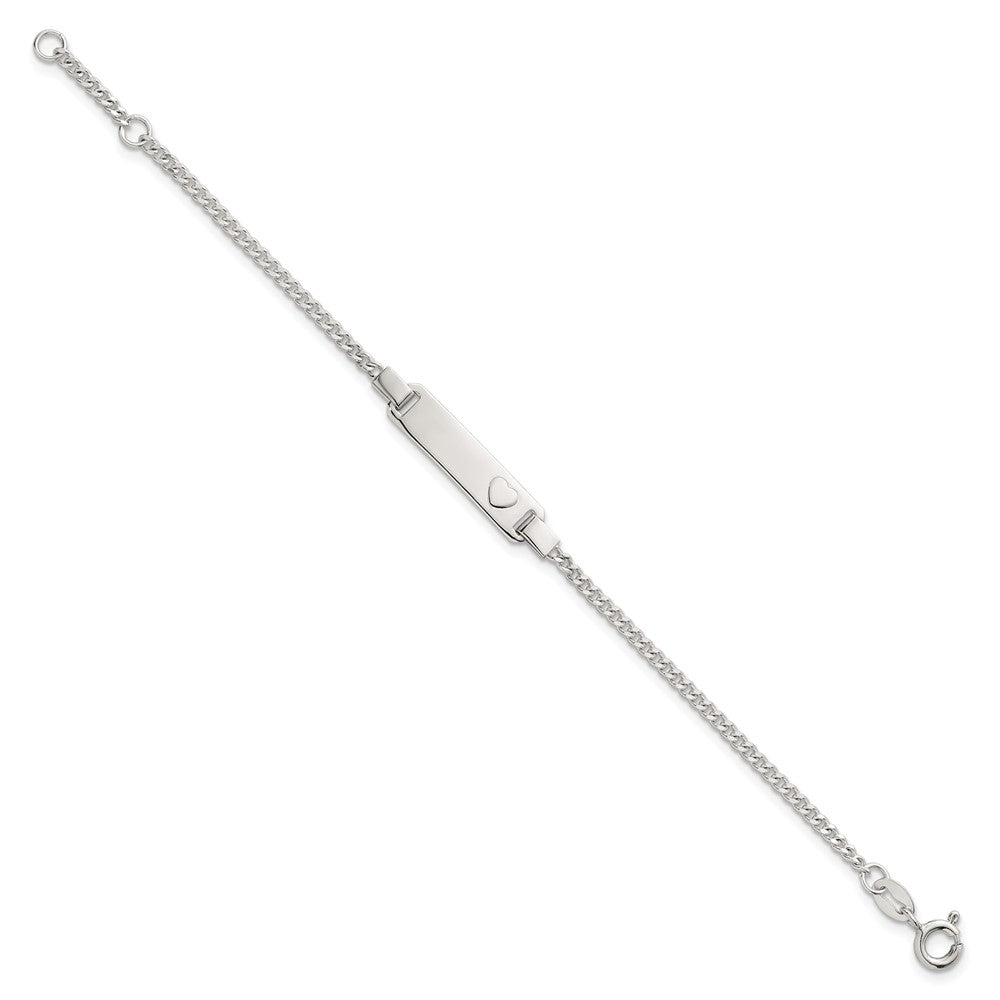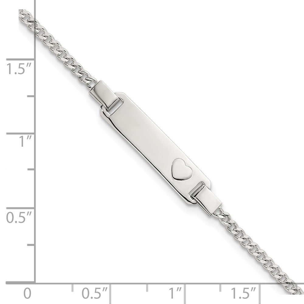 Sterling Silver Polished Raised Heart Curb Link Childrens 5.5 inch with 0.5 inch Extension ID Bracelet