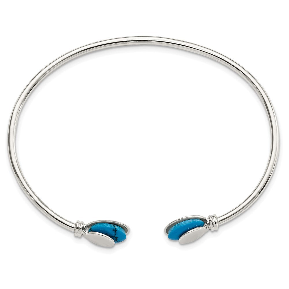 Sterling Silver Polished Reconstituted Turquoise Flexible Cuff Bangle