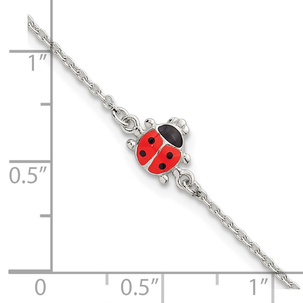 Sterling Silver Polished Red and Black Enameled Ladybug Childrens 5.5 inch with 1 inch Extension Bracelet